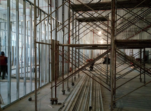 工程進度:隔墻搭建、門窗安裝