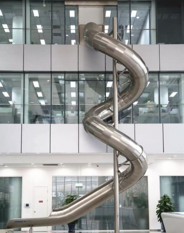 國(guó)內(nèi)也有裝上滑梯的樓,它就是百度科技園,位于中關(guān)村軟件園二期內(nèi),滑梯從三樓到一樓,目測(cè)長(zhǎng)度有二十多米,下班不用坐電梯,這個(gè)設(shè)計(jì)堪比坐電梯,一溜煙就下來(lái)了,太歡樂(lè)了,整天的工作煩惱頓時(shí)都忘掉了。