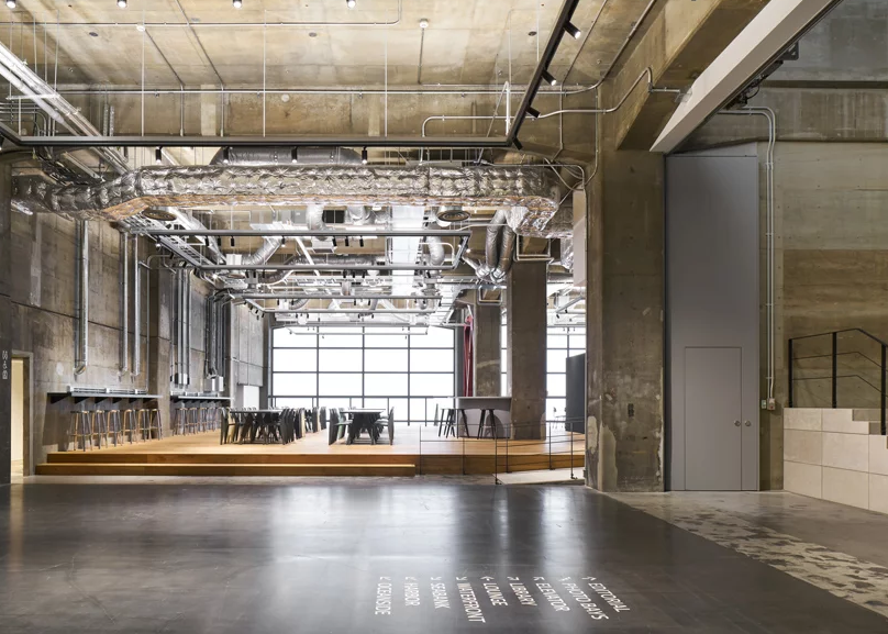占地面積7500平方米、天花板高度6米的寬敞空間中,辦公室裝修設計利用現有空間的潛力和規模感,通過使用抗震支撐、涂有防銹漆的休息室、卡車泊位坡道以及簡單清理過的現有混凝土墻,辦公室裝修設計還充分利用了現有空間的潛力和規模感。
