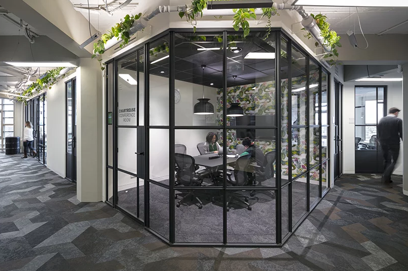 在整個(gè)辦公室裝修中,可以找到創(chuàng)新的綠色應(yīng)用,如走廊的管廊、植物墻和新開發(fā)的綠色財(cái)富枝形吊燈,廚房自動(dòng)澆水。辦公室裝修Kraijvanger建筑師還與Artbinder合作,該公司將當(dāng)?shù)厮囆g(shù)家的藝術(shù)與工作室水療結(jié)合起來,為城市叢林客廳提供獨(dú)特的辦公室裝修理念。