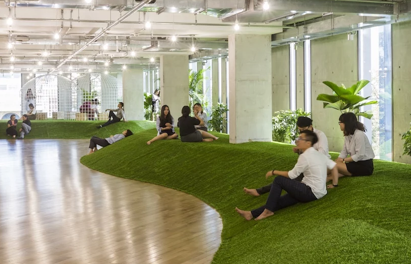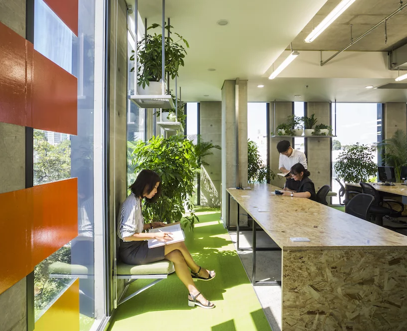 胡志明市這家旅游公司的越南辦事處進(jìn)行的辦公室裝修設(shè)計中,為了能提高工作效率,打造了一個“綠色辦公室”,因為設(shè)計師相信用植物來裝飾空間,可以增強工作能力。下面一起跟著華發(fā)小編來看看這家辦公室裝修效果圖吧。