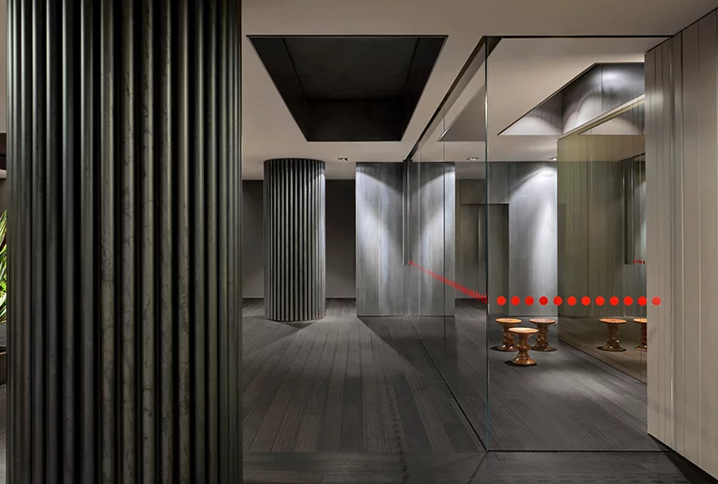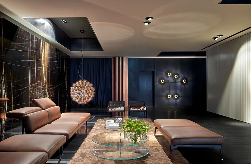 辦公室裝修的8樓,開(kāi)放美麗的城市景觀,是為Adris Grupa管理委員會(huì)主席和最親密的伙伴。它的融合體現(xiàn)在企業(yè)豪華、舒適和戲劇氣氛的結(jié)合上,辦公室裝修強(qiáng)調(diào)了奢華和“工業(yè)”材料,如暗鋼、納洛撒哈拉大理石、玫瑰木單板、橡木地板和銅管,并以高光澤的紅色表面的形式孤立地吸引了視覺(jué)吸引子。公司不使用巨大的手段來(lái)傳達(dá)威望。相反,游人的活動(dòng)是精心編排的充滿驚喜的辦公室裝修空間戲劇的一部分,即滑動(dòng)屏幕打開(kāi)并消失在墻壁上,反射面破壞空間知覺(jué),意想不到的視角正在打開(kāi)。