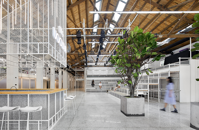 這個地點曾經(jīng)是倉庫以前的太空工廠。這個辦公室裝修保留原來的結(jié)構(gòu),只對天花板進(jìn)行簡單的修繕和翻新-在重建廠區(qū)的過程中,還增加了天窗。他們讓在新建的第二層工作的人們享受陽光和天空的景色。
