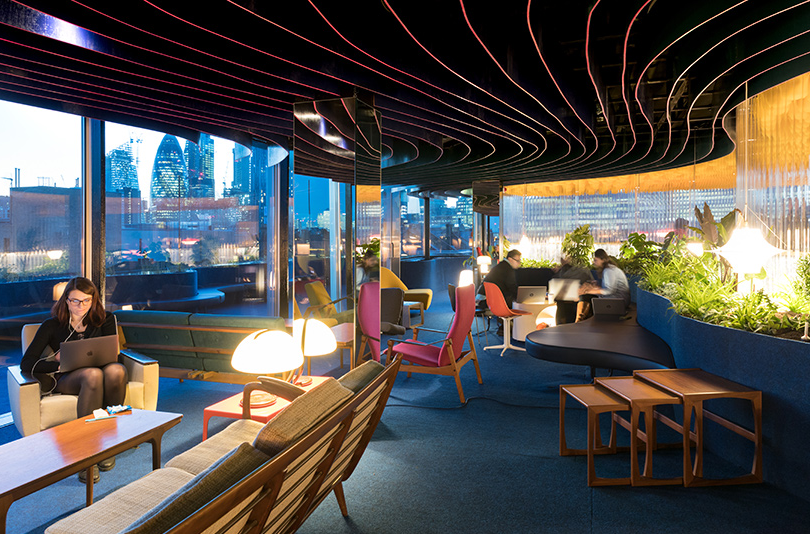 辦公室裝修中新的屋頂空間擴展了Selgascano在……上面第二家始建于2014年11月的Spitalfield大樓。新的空間有五個私人工作室,可容納多達150人的大型團隊(每個人都有自己的室外露臺),辦公室裝修還設有一個屋頂酒吧、一個文化場所和一個公共屋頂露臺,可以俯瞰整個倫敦。大型工作室的辦公室裝修內部天花板上覆蓋著10,000多頂彩色毛氈帽子,這些帽子提供隔音,以確保工作環境的寧靜。